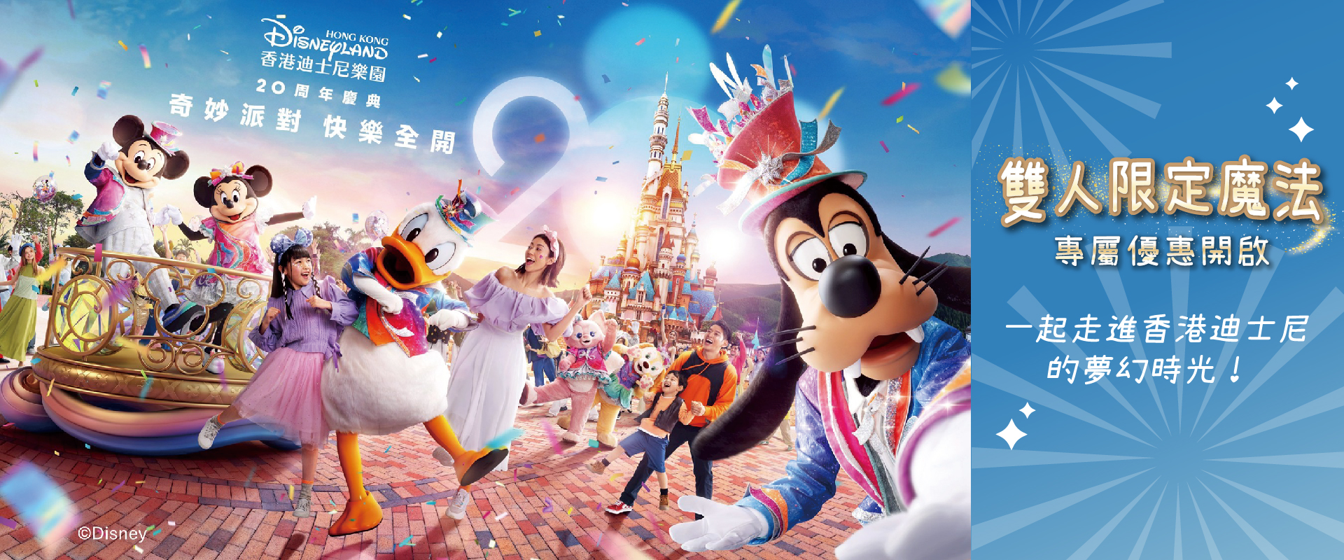 台北/高雄出發|香港迪士尼樂園20周年優惠|香港自由行|機加酒兩天一夜|含暢遊香港迪士尼樂園一日