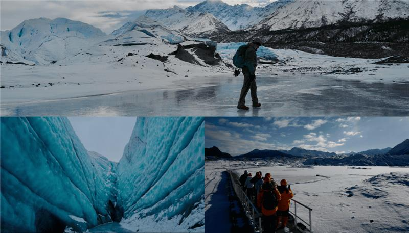 8:30 退房後,乘車前往東方約 2.5 小時車程的【馬塔努斯卡冰川】(Matanuska Glacier)。這是全美唯一可直接開車抵達的冰川,也是阿拉斯加長年可進行徒步的少數冰原。